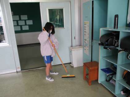 掃除の時間には、班長の代わりに掃除の見とどけをしたり、反省会をしたりしました。また、決められた時間に放送をしました。