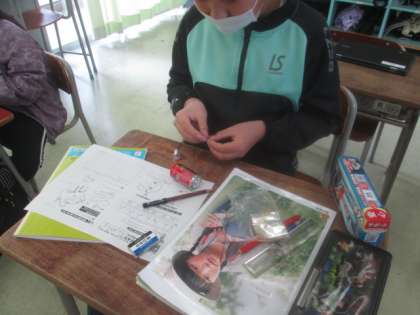 今日は、豆電球の明かりを付けるには、乾電池とどのようにつなげばよいかを考え、確かめました。