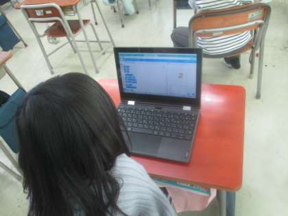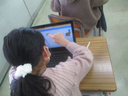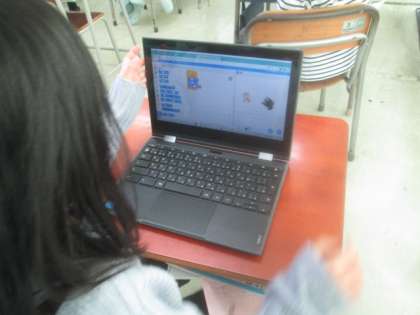 今日は、プログラミングの学習をしました。初めてのことにもかかわらず、キャラクターの動きを工夫して表現することができました。友達の作品を見ながら楽しく学習することができました。
