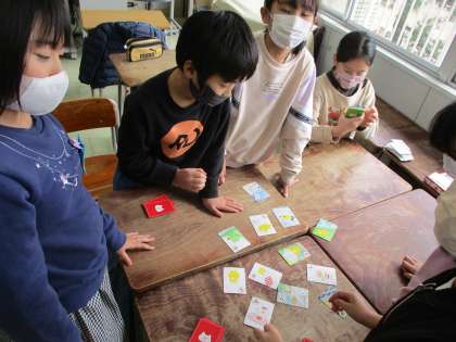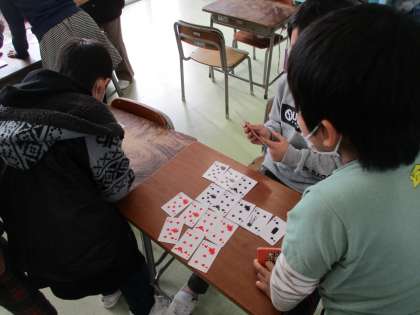 カルタ・トランプ・豆つまみ・けん玉の中から、自分で選んで、友達と一緒に遊びました。みんなでゆったりと楽しい時間を過ごすことができました。