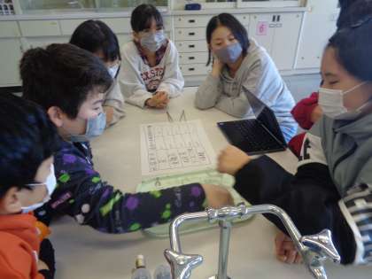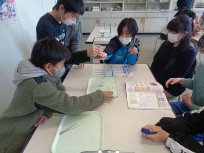 6年生 理科 水溶液のなかま分けをしよう 公開日 2023/01/19 更新日 2023/01/19 6年生 リトマス紙を使って、水、石灰水、食塩水、塩酸、アンモニア水の性質を調べ、仲間分けをしました。リトマス紙の色の変化によって水溶液の性質が違うことに気付きました。