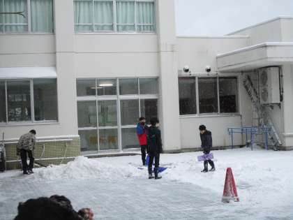 1月25日 朝活動 公開日 2023/01/26 更新日 2023/01/26 学校行事 雪が降り積もり、道路が凍結した寒い朝です。 登校後、自主的に児童玄関前の雪かきを始める子供たちの姿がありました。