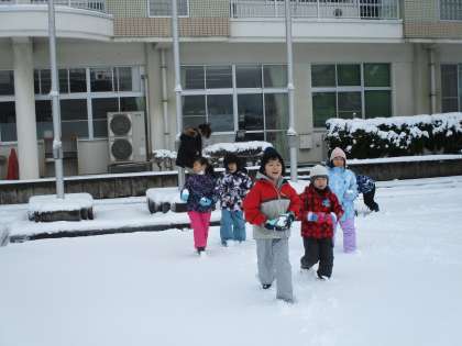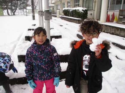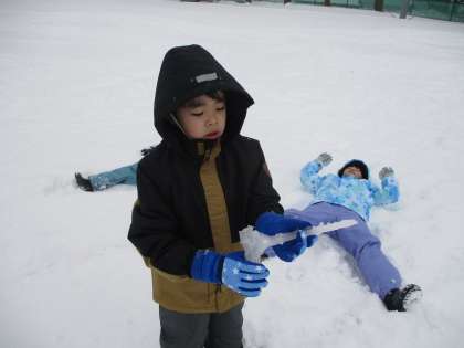グラウンドに積もったたくさんの雪で、思い切り身体を動かして遊びました。