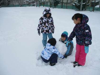 雪合戦や雪だるまづくり、誰も踏んでいない新雪をベッド代わりに寝そべるなど、思い思いに楽しみました。