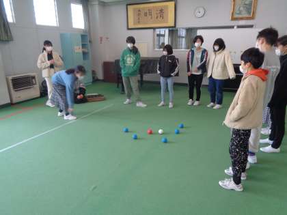 2日間、ボッチャの体験をしました。個人戦や団体戦を行い、みんなで歓声をあげながら楽しみ、貴重な経験ができました。