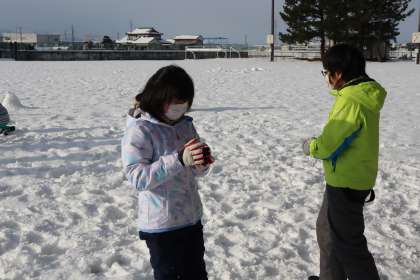集会係が企画した学級集会がありました。グラウンドに積もった雪で遊びました。