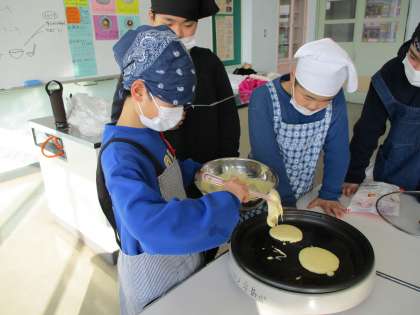 手順や盛りつけの仕方を確認をしながら上手にパンケーキを作りました。