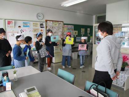 また、先生方にお客さん役をしていただき、注文を聞いたり、出来上がったパンケーキを届けたりしました。