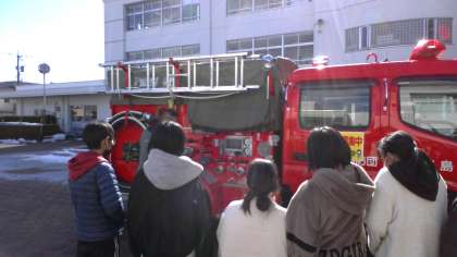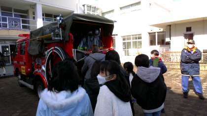 消防団員に所属されているお父さんが講師となってくださり、くらしを守る消防団の様子について学習しました。草島消防団の消防車を間近で見させていただき、たくさんの学びがあったようです。