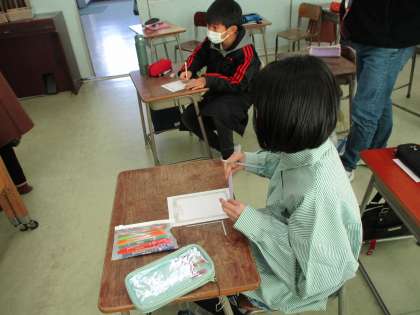 4年生 お父さん・お母さん先生の課外授業「親子でメッセージを伝え合おう!」 公開日 2023/02/05 更新日 2023/02/05 4年生 親子で感謝状を書き、伝え合う活動を行いました。子供たちは家族に向けて、日頃の感謝の気持ちを言葉やイラストに表して伝えていました。