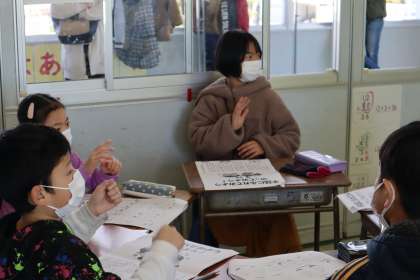 3年生 お父さん・お母さん先生の課外授業 公開日 2023/02/05 更新日 2023/02/05 3年生 お父さん・お母さん先生の課外授業では、3年生は手話を教わりました。習った手話を使い「ありがとうの花」を表すことができました。子供たちは、普段、なかなか機会がない経験をすることができました。