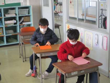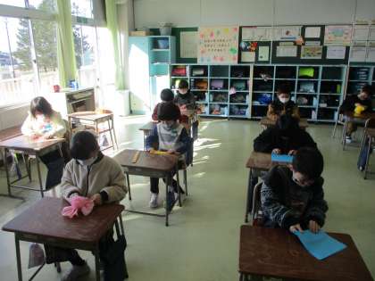 初めてつくる子供も、作り方を教えると「わぁ」と声があがり、夢中になってたくさん作ることができました。自分たちが作った飾りでお祝いの気持ちを伝えることができることに、嬉しさを感じていました。