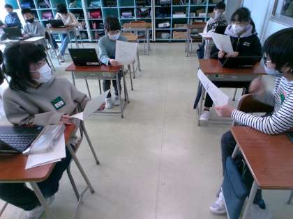 5年生 校外学習に向けて 公開日 2023/02/08 更新日 2023/02/08 5年生 明日は校外学習です。グループ活動での時間の過ごし方について、グループの友達と確認しました。最後に、各々の目当てを立てました。安全で楽しく学べる時間を過ごしたいと思います。