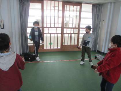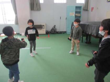 2人でキャッチボールに慣れた後、4人でキャッチボールにも挑戦しました。10回以上落とさずに続けることができたグループもあり、とても盛り上がりました。