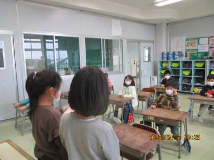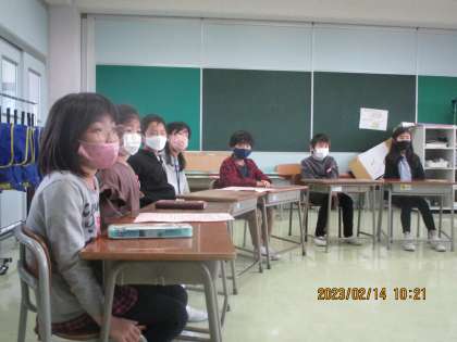 もうすぐ卒業する6年生に感謝とお祝いの気持ちを伝えようと、5年生が中心となって下級生に呼びかけ、様々な取組が始まりました。代表委員会では、スローガンについての話合いをしました。5年生が提案した原案について1年生も学級で話し合い、「ありがとう」という言葉をスローガンに入れたらよいということになりました。学級の代表者がその意見を代表委員会で提案し、上級生たちもみんな賛成してくれました。代表者は教室に戻り、代表委員会の結果をみんなに報告しました。自分たちの意見が取り上げられて、みんなは嬉しそうでした。たくさんお世話になった6年生の卒業を、心を込めて祝いたいという思いが伝わってきました。
