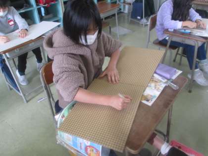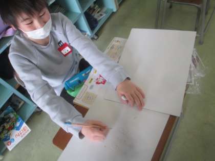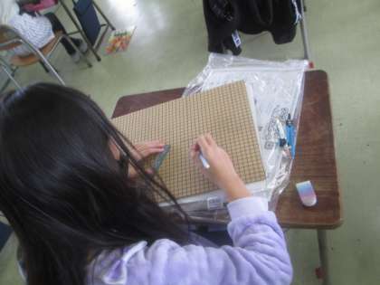 図画工作科の時間に段ボールを使って組み立てるクミクミックスという単元に挑戦しています。段ボールに設計図を書き、慎重に切ることができていました。組み立てるためにはどうしたらよいか考えながら作ることができました。