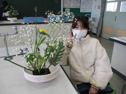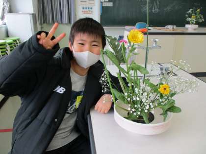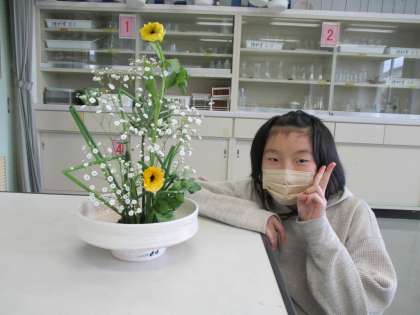 今年度最後のクラブ活動を行いました。生け花クラブの子供たちは、これまでの経験を生かしながら、丁寧に花を生けていました。