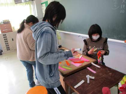 4年生 卒業を祝う会に向けて 公開日 2023/02/21 更新日 2023/02/21 4年生 卒業を祝う会に向けて、体育館を飾るための輪飾りを作っています。休み時間にも、自分たちから進んで取り組んでいます。だんだんと輪が長くなり、嬉しそうな子供たちです。