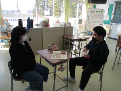 国語科の「古典芸能の世界」では、落語について学習しました。落語家の話す様子を動画で鑑賞し、役によって声の調子を変えたり、身ぶりを使って表現したりする様子に気付くことができました。うどんをすする身ぶりを見たときには、子供たちから自然と笑い声が聞こえてきました。子供たち同士で、落語特有の身ぶりをまねしてみました。