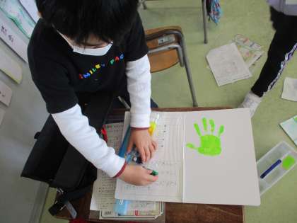 生活科「わたしたんけん」の学習のまとめとして、生まれてからこれまでの自分の歩みや成長を1冊の絵本に仕上げています。