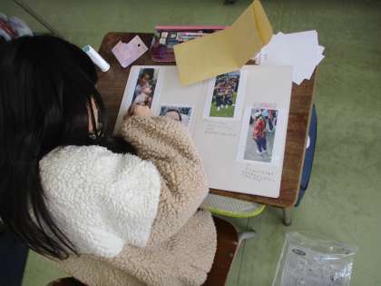 ページの中身や内容を自分で決め、これまで調べてきたことをもとに写真や文、イラスト等で思い思いに表しているところです。