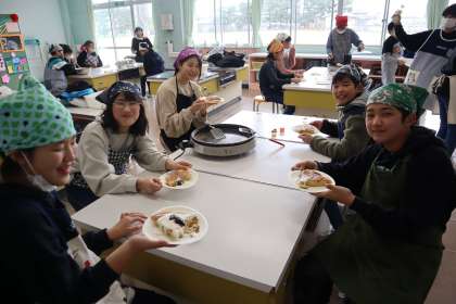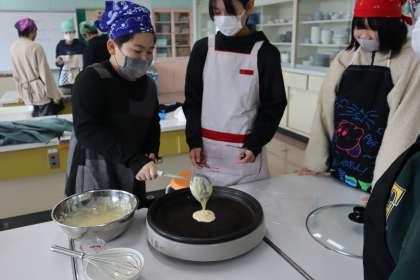 卒業まで残り15日です。今日はパンケーキパーティーをしました。団ごとに分かれて、役割分担しながらパンケーキを作りました。自分好みのデコレーションをして、楽しんでいる様子でした。また1つ、小学校の楽しい思い出が増えました。