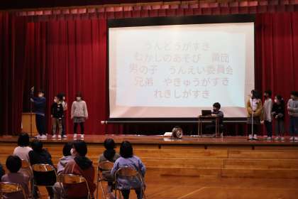 3年生は、出し物として、「逆・山手線ゲーム」をしました。6年生に楽しんでもらうことができて満足そうでした。