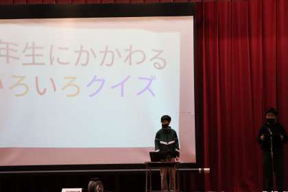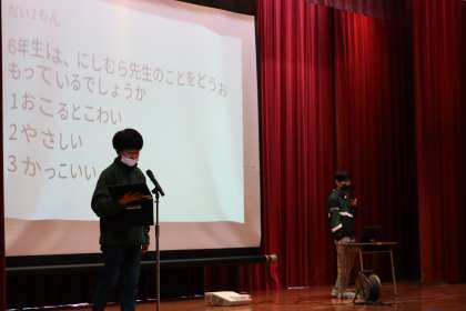 5年生 卒業を祝う集会を運営しました 2 公開日 2023/03/01 更新日 2023/03/01 5年生 6年生に向けた催し物はクイズでした。担当の児童は、直前まで台詞やスライドを確認し、よいものにしようと努めていました。