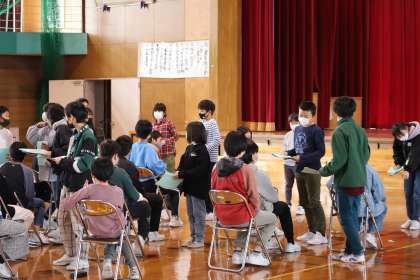 集会後には、今日の集会に協力してくれた下級生に感謝を伝えに行く子供の姿がありました。