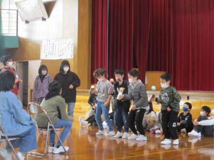 2年生 3/1卒業を祝う集会2 公開日 2023/03/02 更新日 2023/03/02 2年生 2つめの勝負は筒けんで、もしかめ30秒勝負でした。 実は、こちらの方が自信があった2年生。緊張もあったのかこちらは不調で、6年生の勝利。さすが6年生!という上手なもしかめを披露してくださいました。 2年生も一緒に勝負ができ、とてもうれしそうでした。