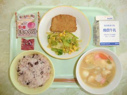 3月3日の給食 公開日 2023/03/03 更新日 2023/03/03 メール用カテゴリ 今日の給食は せきはん ぎゅうにゅう とんかつ コーンあえ こうはくしらたまじる もものタルト ごましお です。 今日もおいしくいただきました。
