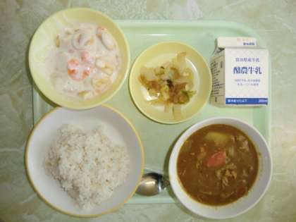 3月6日の給食 公開日 2023/03/06 更新日 2023/03/06 メール用カテゴリ 今日の給食は むぎごはん ぎゅうにゅう カレーライス ふくじんあえ フルーツヨーグルト です。 今日もおいしくいただきました。