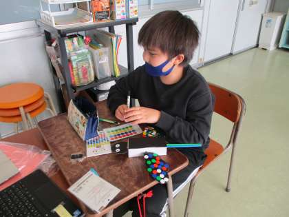 かがやき級 パタパタストロー 公開日 2023/03/08 更新日 2023/03/08 かがやき級 2年図画工作科では、ストローを使って動く仕組みを生かし、鳥の羽が動くカラスを作りたいという思いをもちました。黒の画用紙を羽やくちばしの形に切りました。羽には色のシールを貼るなど工夫しました。