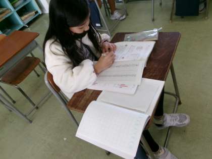 たくさんの情報をわかりやすく整理して表す学習をしています。「正」の字を使い、数を正確に数え、棒グラフに表すことができました。