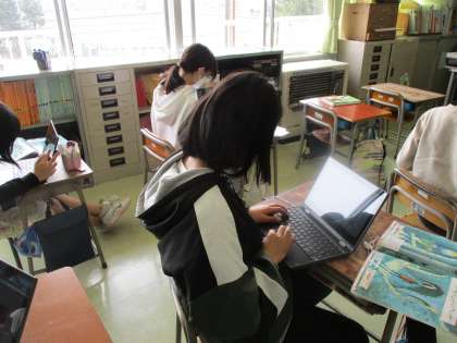 鑑賞の学習では、音楽が表している様子を思い浮かべ、物語に表しました。子供たちは、音楽の特徴を捉え、想像を膨らませながら聴いていました。