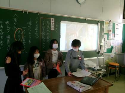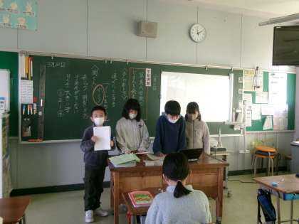 これまで通ってきた3年間で見つけた草島小学校の自慢を発表し合いしました。班の友達と写真を見せながら紹介することができました。
