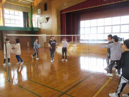 運動係が企画した運動集会を行いました。今回は、ビーチバレーをしました。みんなで楽しく体を動かしました。