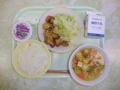 3月13日の給食 公開日 2023/03/13 更新日 2023/03/13 メール用カテゴリ 今日の給食は ごはん ぎゅうにゅう さかなとじゃがいものえごまみそからめ ゆでキャベツ すましじる ぶどうゼリー です。 今日もおいしくいただきました。