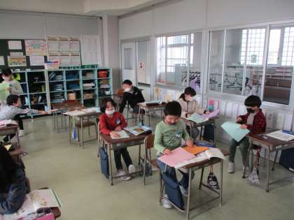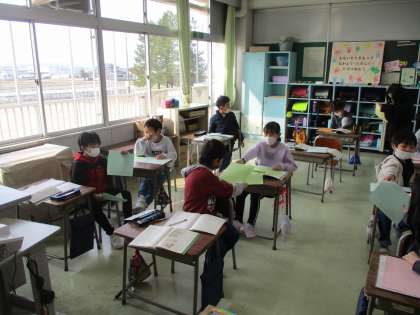 2年生 国語科の学習より 公開日 2023/03/13 更新日 2023/03/13 2年生 「すてきなところをつたえよう」の学習では、友達のすてきなところや頑張っているところを手紙にして、渡す活動を行いました。 友達に自分のよさを見付けてもらい、どの子も嬉しそうな表情をしていました。手紙を書いてくれた友達に、返事を書く活動も行い、温かい気持ちいっぱいの学習になりました。
