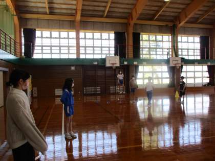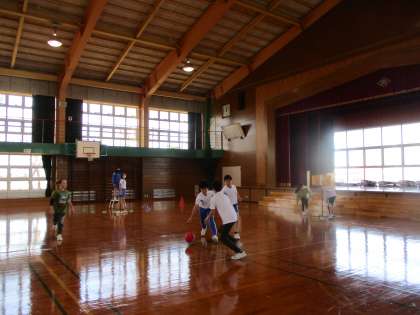 体育科の時間にポートボールを行いました。子供たちは、相手の動きをよく見て、ボールつないでいました。