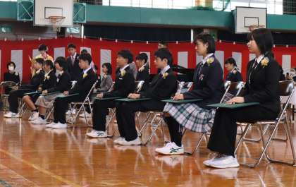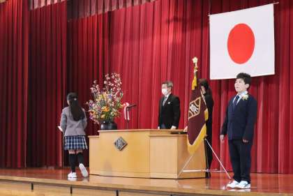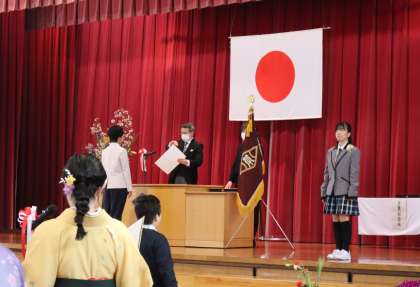 卒業証書授与の様子です。6年間の思いを胸に一歩一歩踏みしめながら歩く様子に成長を感じました。