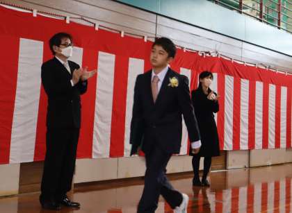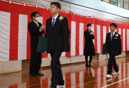 卒業式が終わり、6年生の退場の様子です。保護者の方々、地域の方々、職員に見守られ、堂々と歩く姿に6年間の成長を感じました。