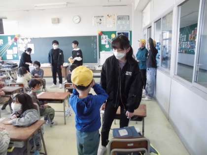6年 1年生のお世話をしました 公開日 2023/04/10 更新日 2023/04/10 6年生 1年生が学校生活に慣れるまで、6年生が毎朝、1年教室に行って、ランドセルの片付けや学習の準備のお手伝いをします。今日はその第1日目でしたが、6年生は、目線を1年生に合わせ、やさしく話しかけていました。時間が余ったときには、一緒にジャンケンをしたりするなど、機転を利かせて活動する姿が頼もしかったです。さすが6年生!