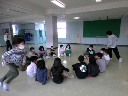 4年 ワイドなかよしタイム 公開日 2023/04/12 更新日 2023/04/12 4年生 今日は学級でのワイドなかよしタイムでした。イベント係の企画で「ハンカチ落とし」「じゃんけんサッカー」をみんなで楽しみました。