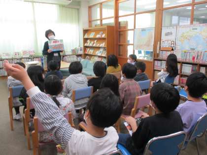 4年生 図書オリエンテーリング 公開日 2023/04/20 更新日 2023/04/20 4年生 今日は図書館司書の佐藤先生にオリエンテーリングをしていただきました。図書室や百科事典の使い方を教えていただいたあと、自分で読む本とクラスのみんなに読んでほしい本をかりました。