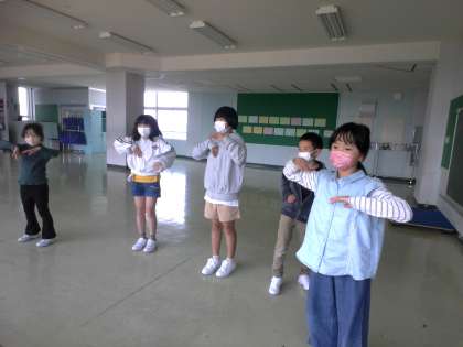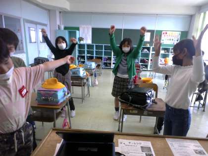 6年生が作ってくれた動画や紙を見て、団ごとに自分たちで応援練習を進めています。