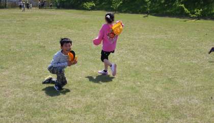 僕らの広場に着いた後は、全員で鬼ごっこをしました。先生方も参加し、外で思いっきり遊ぶことができました。