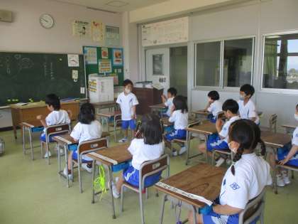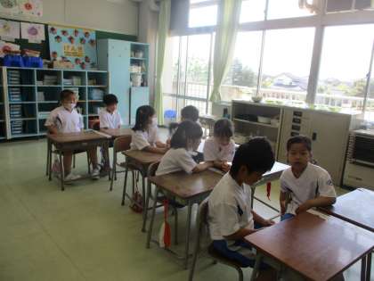1年生 国語科の学習 公開日 2023/05/09 更新日 2023/05/09 1年生 国語科の「ききたいな ともだちのはなし」の学習では、友達に好きな遊びやゴールデンウィークの思い出を質問し、聞き取ったことをクラスの友達に紹介するという活動を行いました。ペアになって、好きな遊びや連休中のことを話したり質問したりする子供たちの表情は、楽しそうで、あちらこちらで会話が盛り上がっている様子がうかがえました。