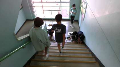 5年生 算数科「比例を活かそう」 公開日 2023/05/17 更新日 2023/05/17 5年生 草島小学校の3階の床の高さは何メートルくらいなのかという問いを解決するために、階段の1段当たりの高さを利用して求めました。 活動中に、1階から2階までの段の高さと2階から3階までの段の高さに約5ミリメートルの違いがあることに気付き、学校設備が学年に合わせて工夫されていることに気付くきっかけになったようです。