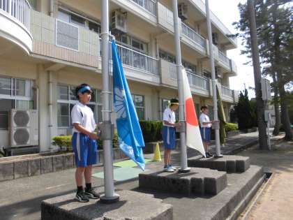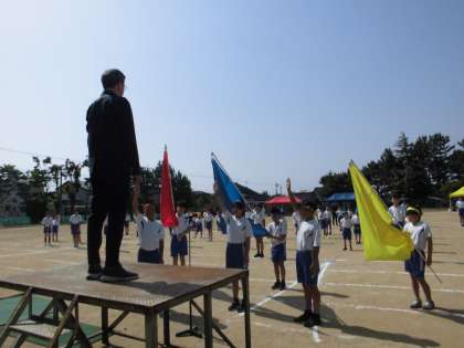 運動会の予行練習をしました。子供たちは、互いに声をかけ合ったり、真剣に応援したりして一生懸命に取り組みました。暑い中頑張ったので、今日はゆっくり休んでくださいね。早寝早起きや十分な睡眠、朝食をしっかりとるなど、体調を整え、元気に本番を迎えましょう。